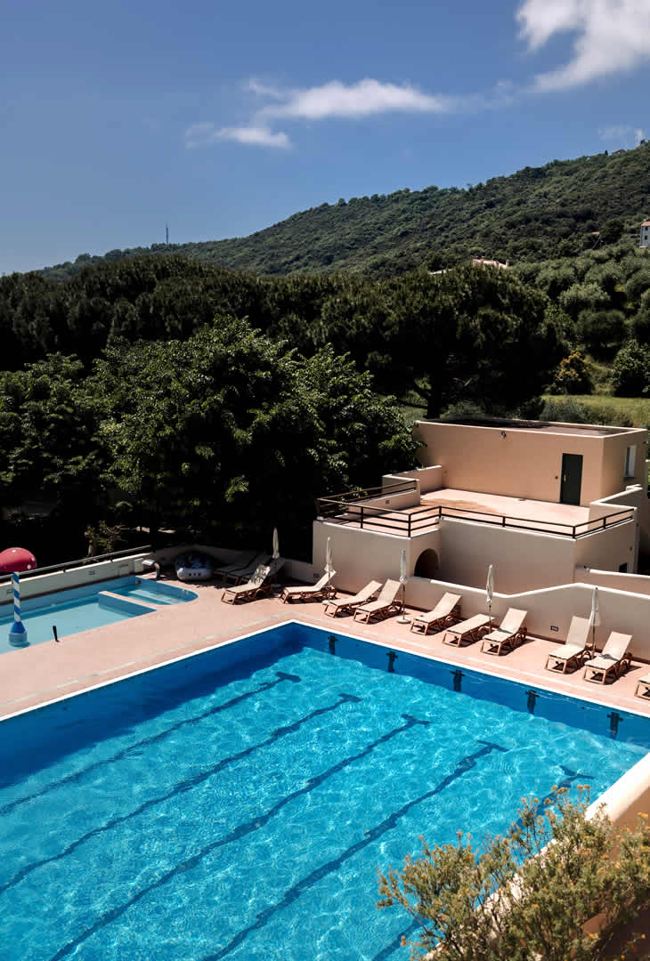 The pools of the Villaggio di GiuEle are the ideal space for your relaxation during your stay at Eurocamping Calvisio. There are two swimming pools reserved for camping guests, one for adults and one for the whole family. The first, a semi-Olympic pool measuring 25x12 meters, with a depth varying from 2 to 3 meters, is ideal for enjoying long swims, surrounded only by the tranquility of the water.